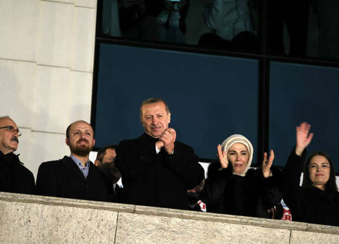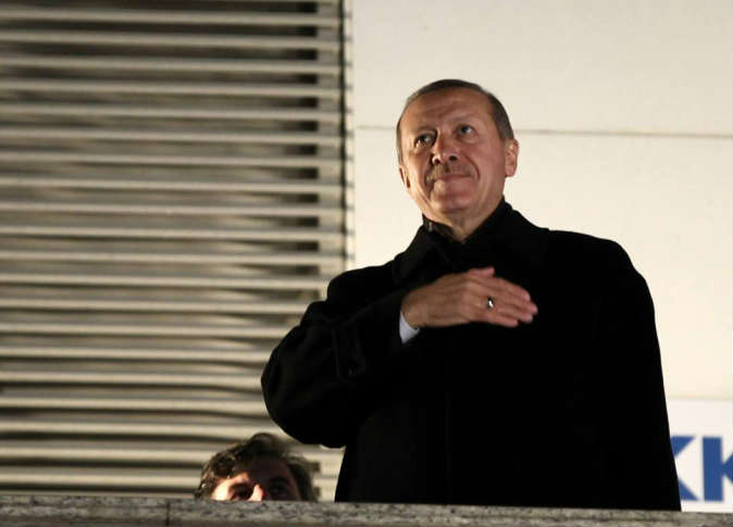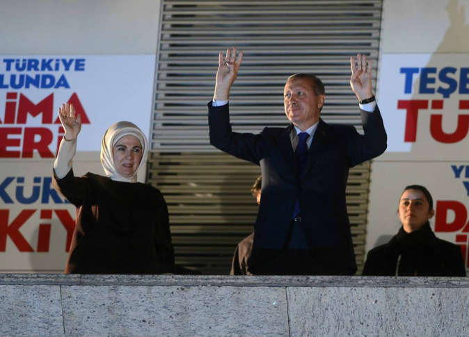 بالصور..أردوغان ينتصر ويرفع شعار رابعة