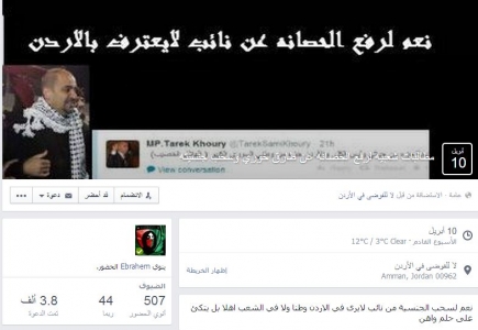 الناشطون طالبوا عبر الصفحة التي تم انشاؤها على موقع 'الفيس بوك' بسحب الجنسية ورفع الحصانة عن خوري عضو مجلس النواب ورئيس نادي الوحدات الحالي ، معلقين ذلك على تصرفاته التي اعتبروها غير مسؤولة تجاه الأردن على حد وصفهم.