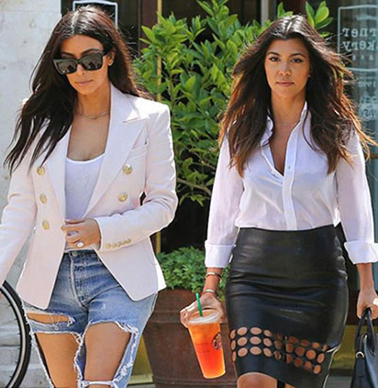 كيم لفتت الأنظار حيث ارتدت جينز ممزّق إلى حد كبير مع من Balmain، أما كورتني فتألقت بتنورة جلدية وقميص أبيض .