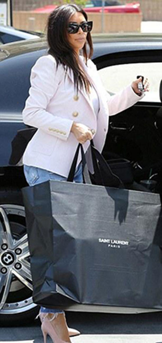 ورصدت كيم تحمل حقيبة من Saint Laurent، إلى جانب سيارتها البنتلي .