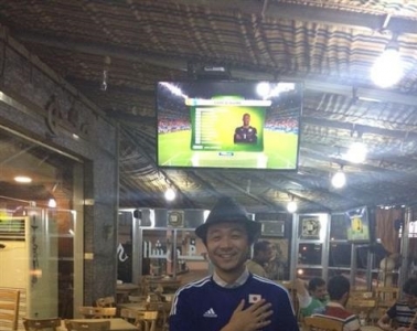 دخل ياباني مقهى الشريف الدولي فجر يوم الأحد منفرداً وجلس على طاولة ليتابع مباراة منتخب بلاده وساحل العاج ضمن مونديال البرازيل 2014م. 'ميا' لفت انتباه عدد قليل ممن تبقوا لحضور المباراة فقد جاء وحده عند الساعة الرابعة فجراً،