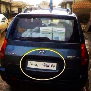 في إطار اخبار إعلان "داعش" لدولتها الجديدة والتي أطلقت عليها تسمية "الخلافة الإسلامية"، تداول عدد من الناشطين على موقع التواصل الاجتماعي "تويتر" صورة لأول سيارة تحمل لوحة "الخلافة الإسلامية"، اضافة الى اسم الولاية التابعة.