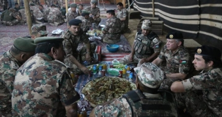 زار جلالة الملك عبدالله الثانى، القائد الأعلى للقوات المسلحة، يرافقه سمو الأمير الحسين بن عبدالله الثاني، ولي العهد، مساء الأحد، إحدى وحدات قوات حرس الحدود على الواجهة الشرقية، حيث أدّى جلالته مع إخوانه من رفاق السلاح صلاة المغرب جماعة، وتناول معهم وجبة الإفطار.