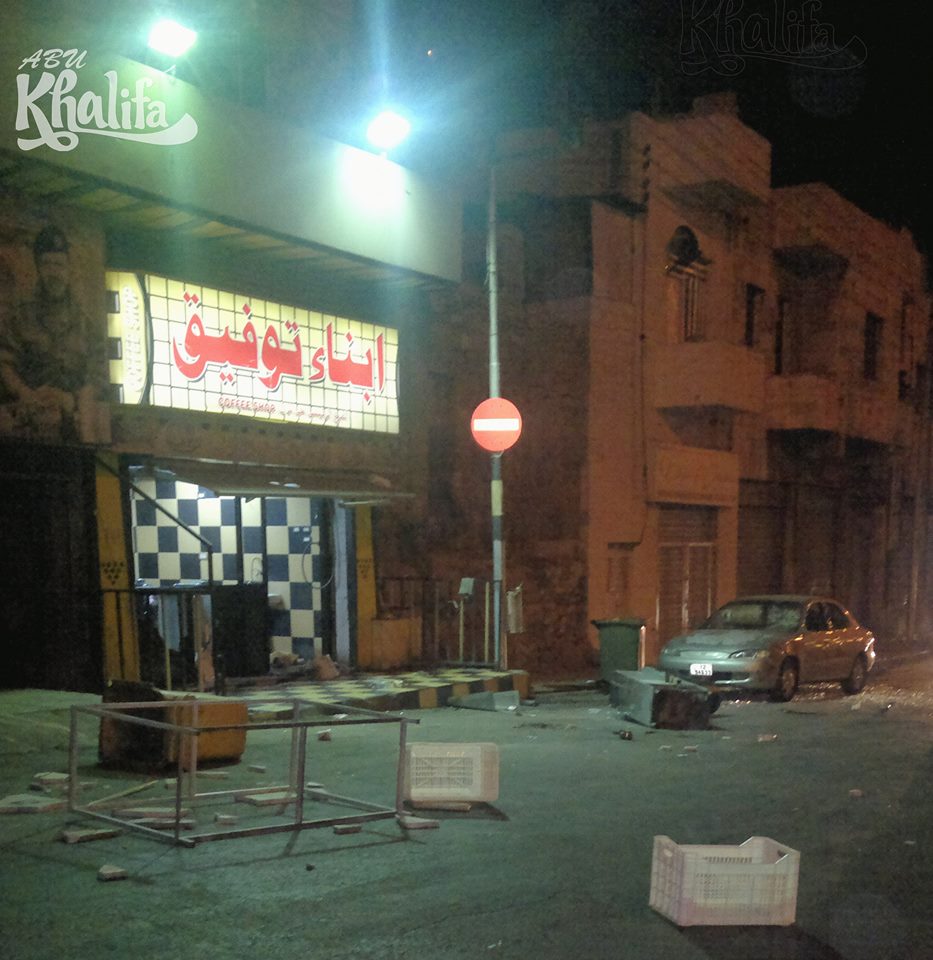 اندلعت في ساعات فجر اليوم الاثنين مشاجرة في شارع المهاجرين استخدم خلالها السيوف والسكاكين و القناوي والتراشق بالحجارة واسطوانات الغاز الامر الذي ادى الى تحطيم كفتيريا (ابناء توفيق) وسيارة صاحب المحل فيما شوهد رجال الامن يعملون على فض النزاع .