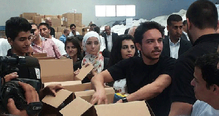 ولي العهد الحسين يشارك بتجهيز طرود الخير لغزة