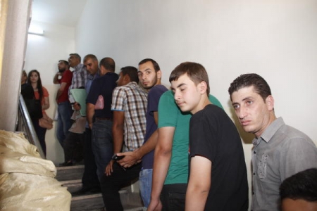 وكان في استقبال الاهالي في ذلك المبنى موظفان فقط تقبع مكاتبهما في الطابق الثاني، ورغم اصطفاف المراجعين في طوابير طويلة، غير انهم صرحوا لـ'السبيل' ان إجراءات الختم تتم بسرعة، إلا ان الاجراءات في المبني الرئيسي هي التي تأخذ وقتا اطول.
