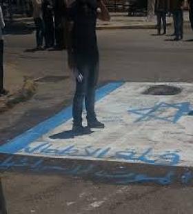 الراي نيوز- اقدم أحد أصحاب محال السوبرماركت في منطقة شفا بدران - طريق ياجوز -داخل محطة المتكاملة، على وضع علم 'إسرائيل' على باب محله ليدوسه المواطنون.