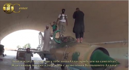 ويظهر بالفيديو مقاتلي التنظيم وهم يتوعدون النظام السوري وبشار الأسد من على الطائرات الحربية، والتي أكدت مصادر أن التنظيم اجبر عدد من الطيارين السوريين الأسرى لديهم بتدريب المقاتلين على استخدام تلك الطائرات .
