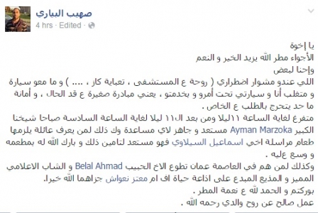 وبحسب المنظمين فإنهم على استعداد لاستقبال طلبات الراغبين بالخدمة طوال ساعات الليل وحتى انتهاء موجة المطر العاصفة .