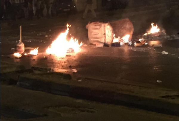 وأقدم المحتجون بإغلاق الشارع الرئيسي بالحجارة والإطارات المشتعلة، فيما حضرت قوات الدرك إلى المكان واطلقت الغاز المسيل للدموع لتفرق المحتجين.