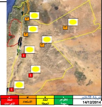 رفع حالة التحذير جنوب الاردن لدرجة الخطر ..