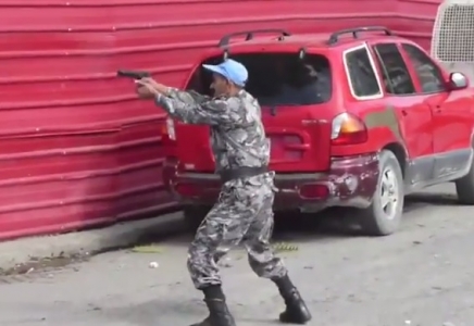 بث التلفزيون الرسمي الهاييتي، مشاهداً قال إنها لاشتباكات بين محتجين وقوات حفظ السلام الأردنية المتواجدة هناك.
