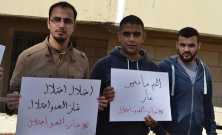 نظم طلاب في الجامعة الأردنية ظهر اليوم الثلاثاء اعتصاما تحت شعار "غاز العدو احتلال"، وذلك رفضاً للقرار الحكومي بتوقيع اتفاقية لاستيراد الغاز من إسرائيل.