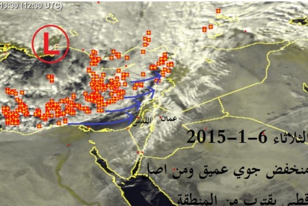 تتأثر منطقة بلاد الشام ومنها المملكة اعتبارا من اليوم بمنخفض جوي عميق وبارد جدا ومن أصل قطبي يتمركز الى الجنوب من تركيا ويتحرك ليلا الى جزيرة قبرص ومن ثم يصل الى شمال غرب سوريا صباح الاربعاء مترافقا بأمطار غزيرة وثلوج كثيفة فوق معظم المرتفعات الجبلية وصولا الى السواحل في سوريا وشمال لبنان.