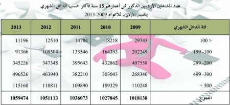 وكشفت البيانات ذاتها ان أكثر من 100 الف مشتغل في الأردن يعملون برواتب تقل عن 200