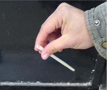 بواسطة الشلمونة 'المصاصة' والتي كانت بيد ابنها.