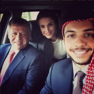 صورة "سيلفي” تظهر جلالة الملك عبدالله الثاني وجلالة الملكة رانيا العبدالله وسمو الأمير الحسين بن عبدالله الثاني ولي العهد، في طريقهم إلى المنزل بعد المشاركة في احتفالات عيد الاستقلال، مساء الأثنين.