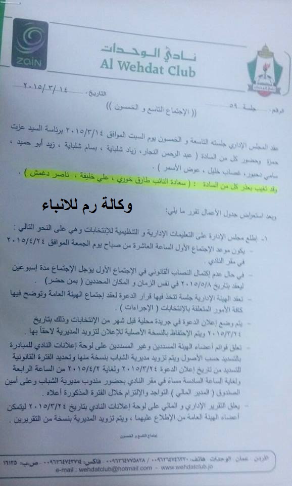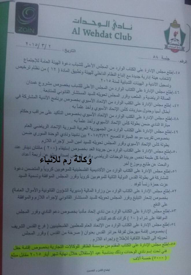 وبعد الاطلاع على الوثائق المرفقة والعقد الموقع بين الشخص المنظم للحفل ونادي الوحدات والتأكد من سلامة موقف النادي من هذه الادعاءات بات البعض يطرح تساؤلات مشروعة ما الهدف الذي يريد البعض الوصول اليه من خلال تشويه صورة البعض من خلال العزف على وتر الوطنية للحصول على مبتغاهم .