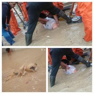 ويظهر الفيديو ادناه غرق باص كيا في منطقة الرنتيسي وسايارات "تسبح" في الانهار التي تشكلت.