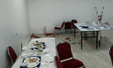 ويظهر في الصور الدماء منتشرة في المكان والذي يعتقد أنه داخل المطعم .