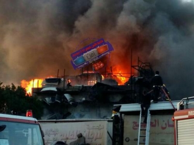 اندلع حريق كبير مساء يوم أمس الثلاثاء في احدى المحلات التجاريه