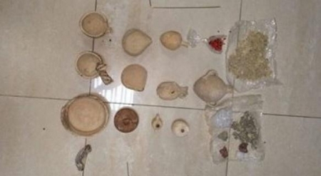 واضاف البيان "انه ومن خلال مراقبة المشتبه به وتحركاته وما تم جمعه من معلومات حوله تم التأكد من صحتها وامتلاكه لبعض القطع الاثرية حيث جرى فور ذلك ضبطه اثناء وجوده في احدى الشوارع العامة وبحوزته مجموعة من المواد والادوات التي تستخدم للبحث عن الدفائن وجرى وفق الاجراءات القانونية المتبعة تفتيش منزله وعثر بداخله على مجموعة من القطع الفخارية المختلفة على شكل سراجات وصحون وجرار فخارية اضافة الى قطعه معدنية دائرية الشكل تحمل كتابات باحرف لاتينيه وكميه من مادة البخور مختلفة الانواع" . وتابع البيان "انه وبعد عرض مجموعة القطع المضبوطة داخل المنزل على خبراء من دائرة الاثار العامة تبين ان جميعها قطعا اثرية ذات قيمة تاريخية وما زال التحقيق جار كما وسيتم تسليم القطع الاثرية للجهات المعنية" .