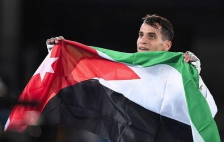 ميدالية اولمبية ذهبية لصالح الاردن٬ مؤكدة على فرحتها وفخرها بابنها الذي رفع