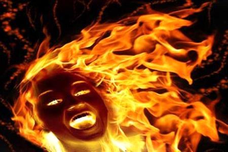 فتاة تحرق نفسها في الجوفة!!