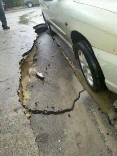 سقوط مركبة اثر انهيار شارع في المقابلين
