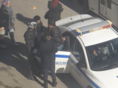 ويظهر في الصور  رجال الامن العام يقيدون شاباً عشرينياً ثم اقتياده للمركز الأمني لبدء التحقيقات معه.