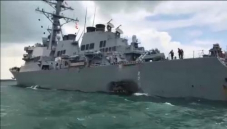 فقدان 10 بحارة باصطدام مدمرة اميركية مع ناقلة نفط شرق سنغافورة