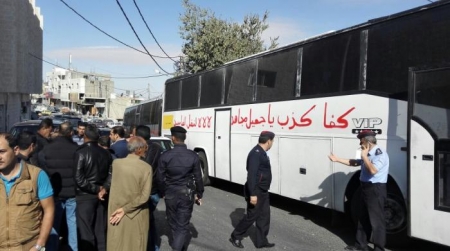 نفذ اصحاب حافلات النقل بين عمان والطفيلة اليوم الاثنين، اعتصاما مفتوحا وتوقفا عن العمل مطالبين برحيل وزير النقل، لعدم تنفيذه الوعد بشطب حافلات الكوستر العاملة على الخط.