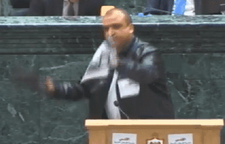وضع عضو مجلس النواب الأردني، عبد الله عبيدات، الأحد، حذاءه على صورة رئيس الوزراء الإسرائيلي، بينيامين نتنياهو، بعد القرار الأميركي، اعتبار القدس عاصمة لـ"إسرائيل".وقال عبيدات، خلال جلسة لـ"النواب" بشأن القدس، إن "الرد الأمثل على (الخنزير) نتنياهو، بهذاه الطريقة"، قبل خلع حذائه ووضعه على صورة لنتنياهو كانت بحوزته.وطالب عبيدات "العرب والمسلمين بالاستيقاظ، والانتباه للخطر المحدق بهم".وكان رئيس مجلس النواب، عاطف الطراونة، أعلن عن تخصيص الجلسة، للحديث عن تبعات قرار الرئيس الأميركي دونالد ترامب، اعتبار القدس عاصمة لـ"إسرائيل".