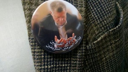 وزع النائب طارق خوري شعارا حمل صورة جلالة الملك عبد الله الثاني مكتوب عليها 'خادم اولى القبلتين وثالث الحرمين الشريفين'.