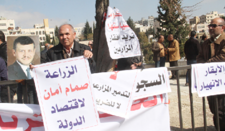 وجدد المعتصمون مناشدتهم للملك عبدالله الثاني بإنصاف المزارعين والغاء الضريبة أسوة بالأدوية.