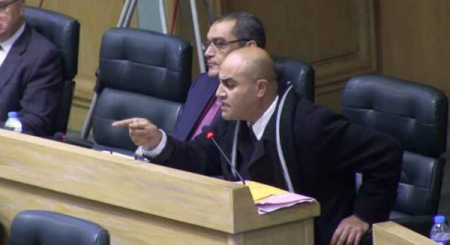 'لقد كان لي الشرف اليوم ان تلقيت خبر تحويلي الى لجنة السلوك تمهيدا لمنعي من دخول مجلس النواب وحضور الجلسات حيث تتبع حكومة الجباية سياسة تكميم الأفواه وذلك عن طريق تحريض بعض النواب بتقديم الشكوى على اي نائب ينتقد سياسات وقرارات حكومة الملقي (حكومة الجباية) المجحفة بحق الشعب الأردني وهذا شرف ونيشان اضعه على صدري.'