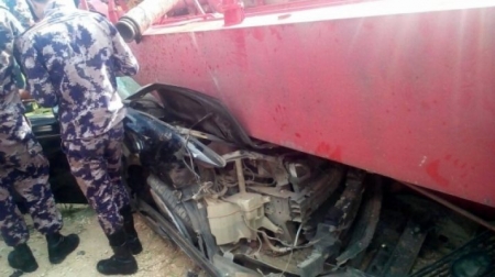 صرح المكتب الإعلامي في الدفاع المدني بأن فرق الإنقاذ والإسعاف في مديرية دفاع مدني البلقاء تعاملت صباح اليوم مع حادث تدهور ونش (خلاط اسمنت )وانقلابه على مركبة صغيرة بمنطقة عين الباشا، حيث نتج عن الحادث وفاة شخص، وإصابة ثلاثة آخرين بجروح ورضوض مختلفة بالجسم .