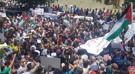 اعلن رئيس مجلس النقباء د. علي العبوس اعطاء الحكومة مهلة أسبوع لسحب قانون الضريبة الجديد او اسقاط حكومة هاني الملقي. جاء ذلك في كلمة للدكتور العبوس امام الاف المحتشدين امام مجمع النقابات المهنية رفضا لقانون الضريبة الجديد.