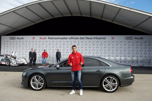 اودي هي الراعي الرسمي لنادي ريال مدريد في اتفاق خاص يجعلها تقدم لكل لاعبي النادي أي سيارة يختارونها من العلامة الألمانية حسب تفضيلاتهم المختلفة، وهنا تظهر لنا شخصية رونالدو المحبة دوماً للسرعة والأداء العالي والرقي.