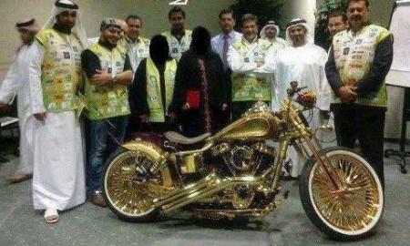 قام مواطن اماراتي من حكام الامارات بدفu تكاليف وصلت مئات الملايين من الدراهم لشركة مختصة بصناعة الدراجات حيث تم استخدام واحد وعشرين كيلو غرام من الذهب .