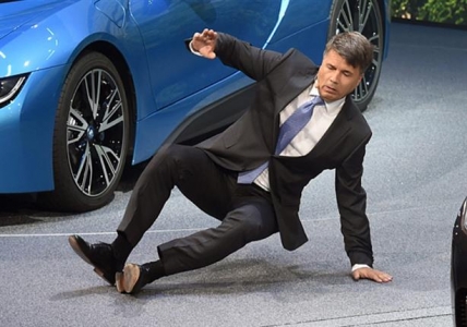 بالفيديو.. سقوط رئيس BMW العالمية أمام سياراته في فرانكفورت