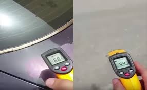 حيث قام المواطن بقياس درجة حرارة السيارات من الخارج بجهاز مخصص لقياس الحرارة، وسجل الجهاز درجة حرارة 54 درجة للون الابيض و57 للون الفضي و64 للون الرصاصي.