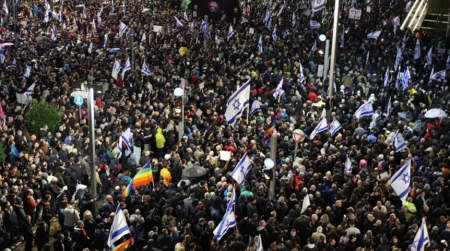 الراي نيوز - شارك آلاف الإسرائيليين مساء أمس السبت في تظاهرة أمام منزل رئيس الوزراء الإسرائيلي بنيامين نتنياهو وسط مدينة تل أبيب مطالبين بإقالته.