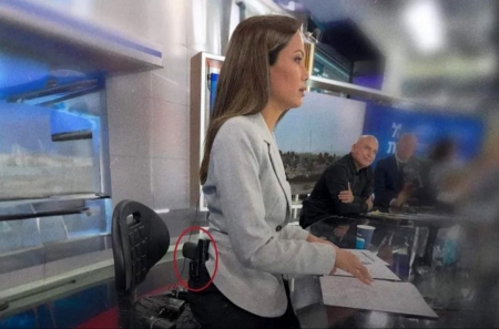 في تصرف بدا غريبا، ظهرت مقدمة الأخبار الإسرائيلية، ليتال شيمش، وهي تضع سلاحا فرديا على محيط خصرها داخل الأستوديو أثناء تقديم أحد البرامج على الهواء.