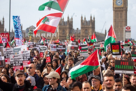 آلاف المتظاهرين في المملكة المتحدة يخرجون بمسيرات دعماً لغزة