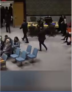 لحظة مغادرة دبلوماسيين قاعة مجلس الأمن خلال خطاب سفير إسرائيل - فيديو