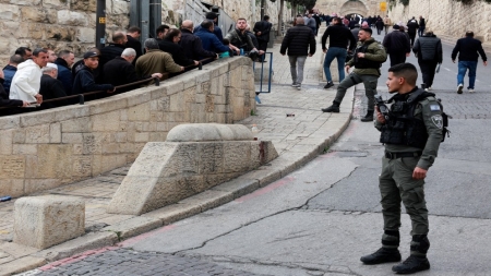 وتواصل قوات الاحتلال الإسرائيلي للشهر الخامس على التوالي، فرض حصار على البلدة القديمة من القدس المحتلة، وانتشرت منذ الصباح الباكر عند مداخلها بما فيها المسجد الأقصى، وكثفت من وجودها في محيط بابي الخليل والسلسلة في محاولة لعرقلة وصول المصلين.