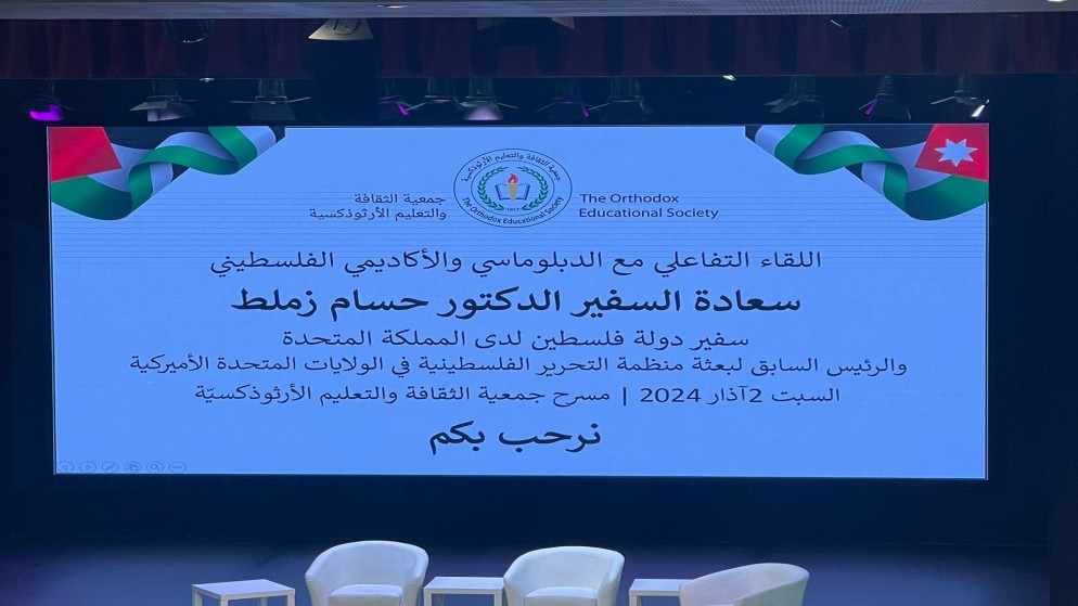 وشكر زملط، خلال ندوة تفاعلية نظمتها الجمعية الثقافة والتعليم الأرثوذوكسية، الأردن على جهودة في دعم القضية الفلسطينية، قائلا: "الشكر موصول ومستمر للأردن ملكاً وشعباً وجيشاً، قد نكون جسدين، ولكن قلبٌ واحد نابض في فلسطين".