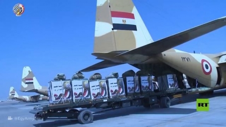 وقال المتحدث باسم الجيش المصري العقيد غريب عبد الحافظ، إن "القيادة العامة للقوات المسلحة أصدرت أوامرها بتجهيز طائرات نقل عسكرية محملة بأطنان من المواد الغذائية والاحتياجات الإنسانية العاجلة للتخفيف من المعاناة التي يعيشها سكان قطاع غزة".