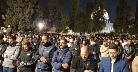 الراي نيوز - أدى آلاف المواطنين صلاتي العشاء والتراويح في رحاب المسجد الأقصى المبارك، رغم قيود وتضييقات الاحتلال الإسرائيلي.